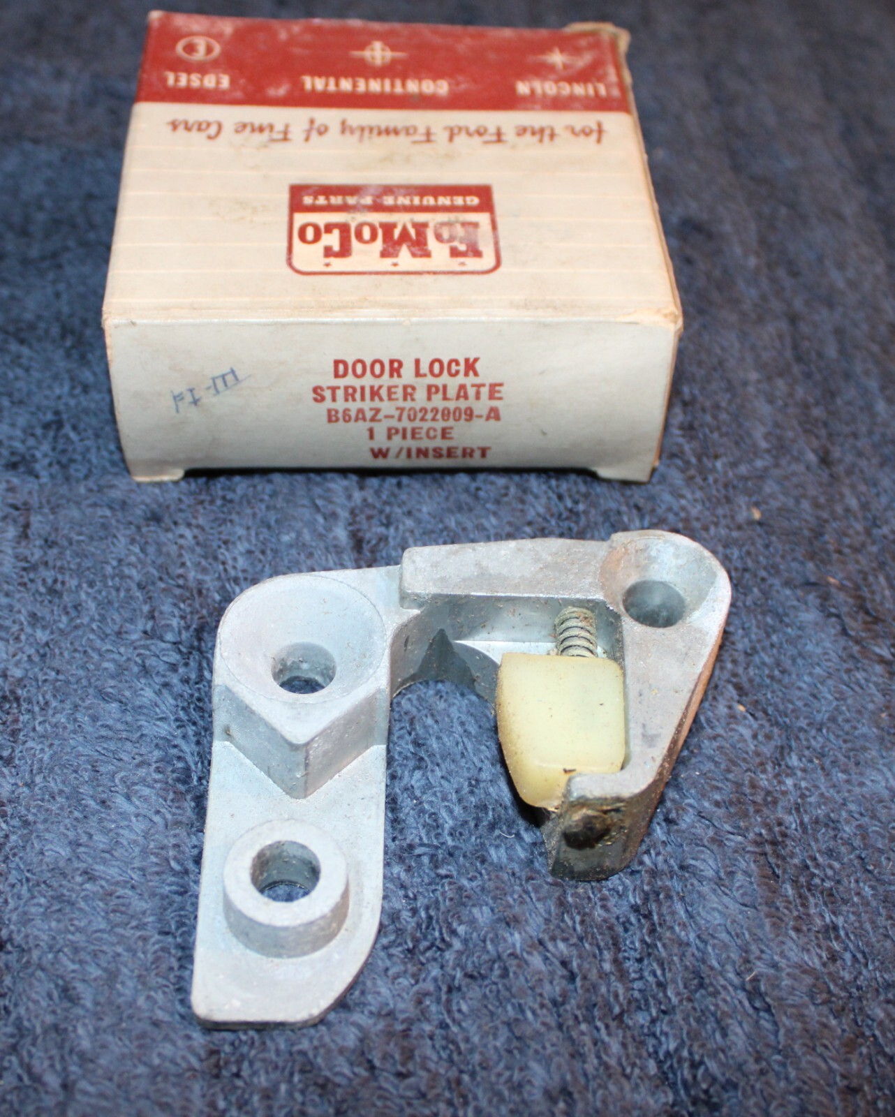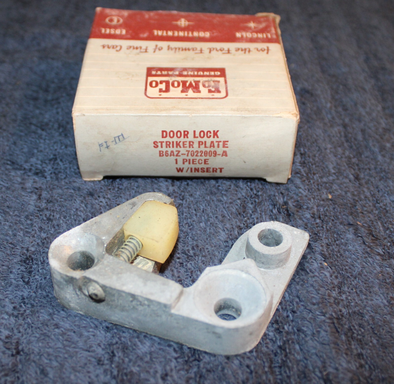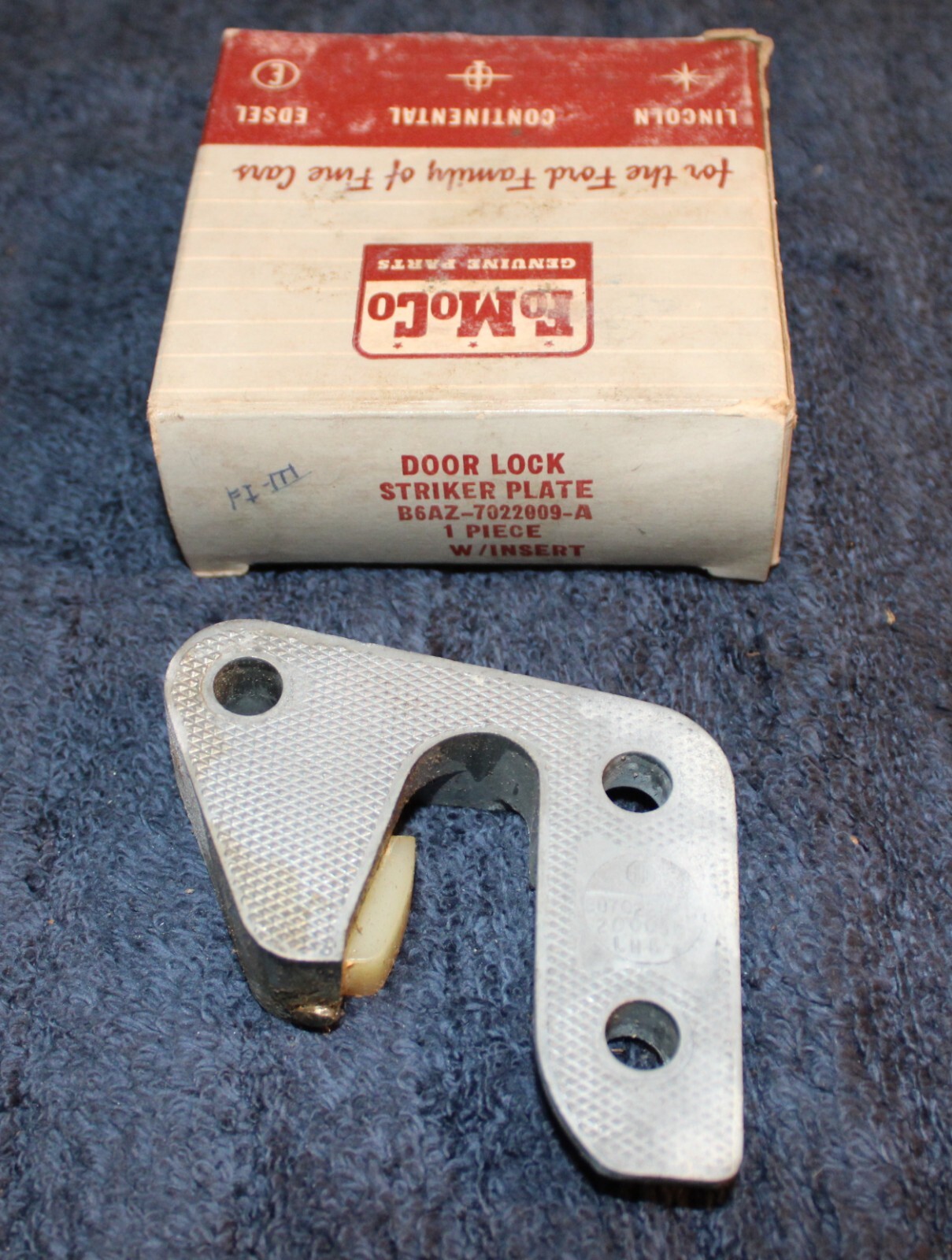 1956-1957 Ford Thunderbird, 1956 Ford Passenger Cars. NEW OLD STOCK Drivers LH Side DOOR LOCK STRIKER PLATE. This is an ORIGINAL FORD NOS PART. This is in Excellent condition. New in the box. Impossible To find NOS. Please email with any questions. 121024-14 WE HAVE A STORE WITH THOUSANDS OF ORIGINAL and NOS FoMoCo PARTS. CHECK IT OUT.