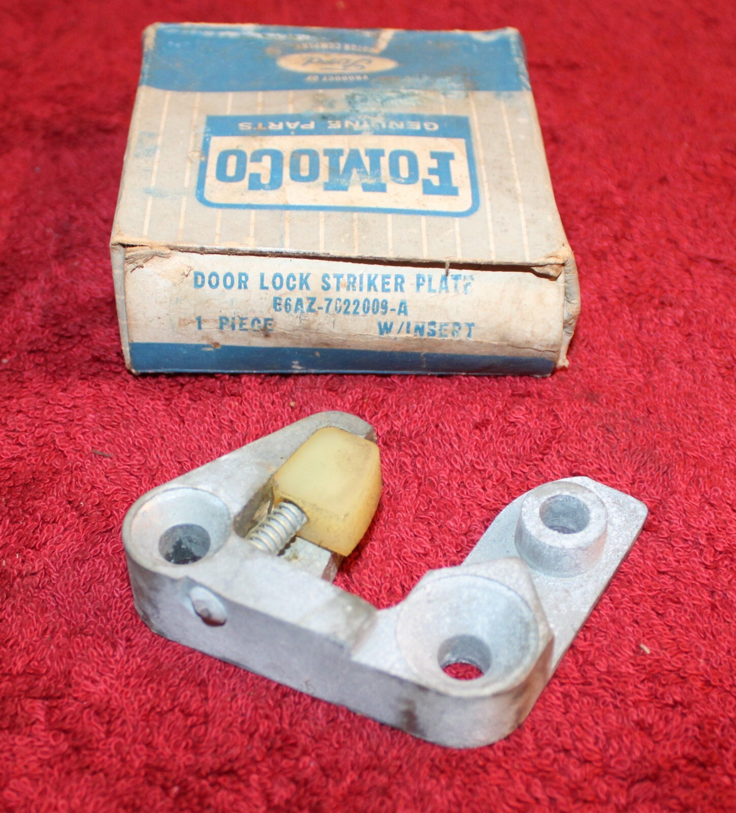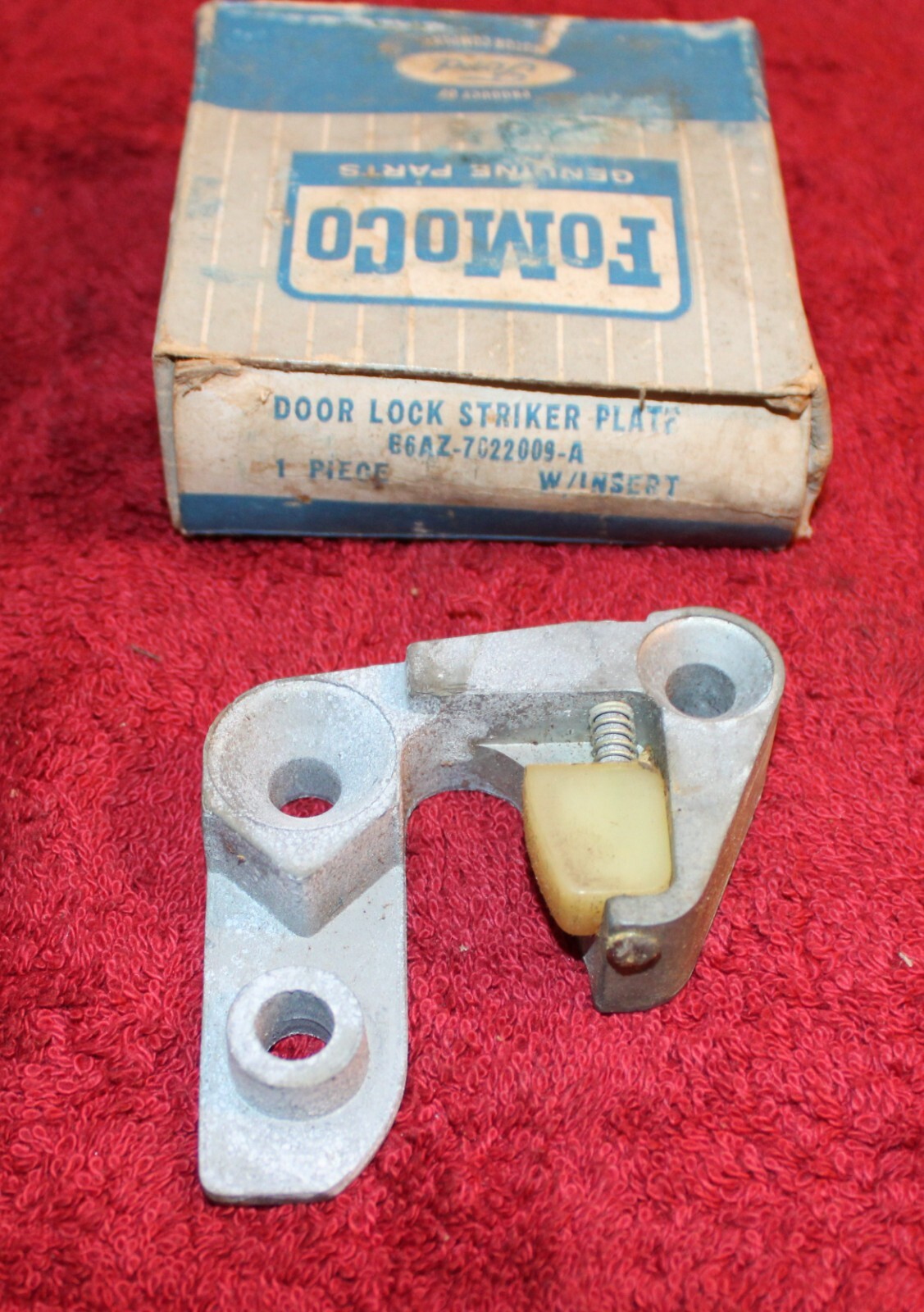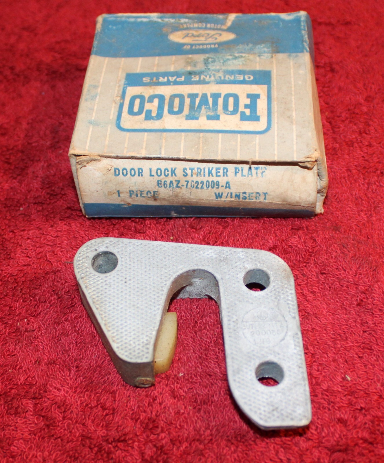 1956-1957 Ford Thunderbird, 1956 Ford Passenger Cars. NEW OLD STOCK Drivers LH Side DOOR LOCK STRIKER PLATE. This is an ORIGINAL FORD NOS PART. This is in Excellent condition. New in the box. Impossible To find NOS. Please email with any questions. 121024-15 WE HAVE A STORE WITH THOUSANDS OF ORIGINAL and NOS FoMoCo PARTS. CHECK IT OUT.