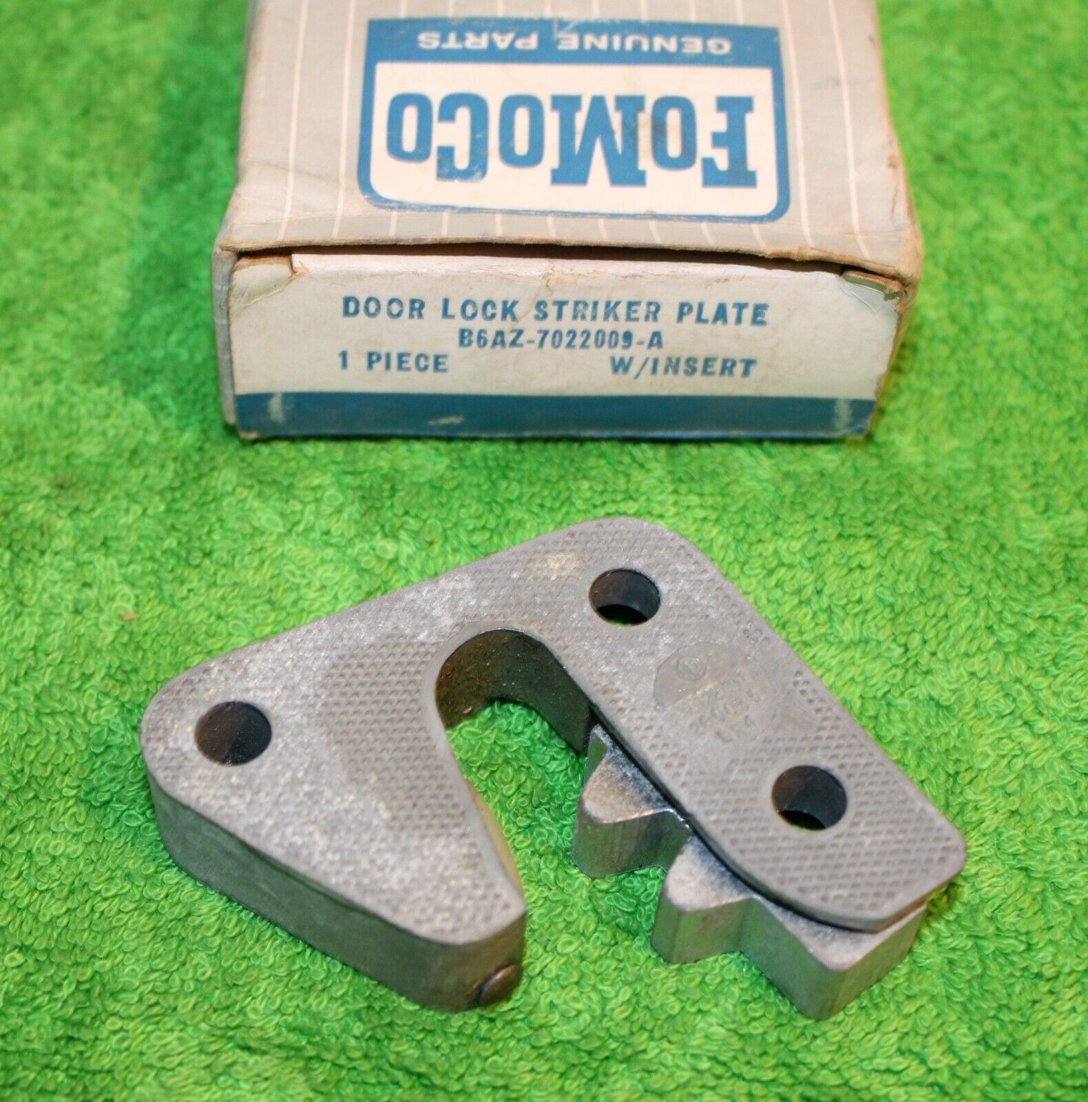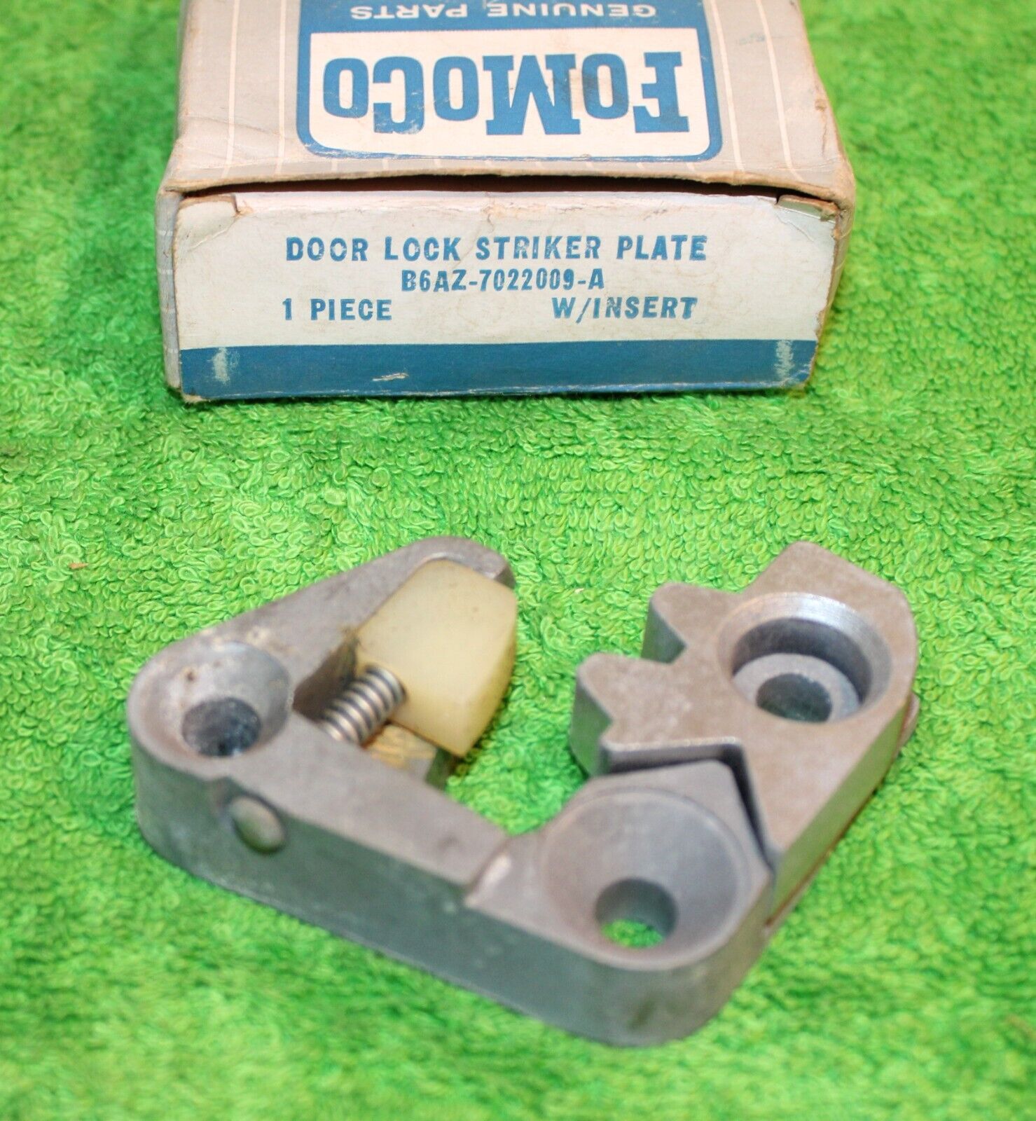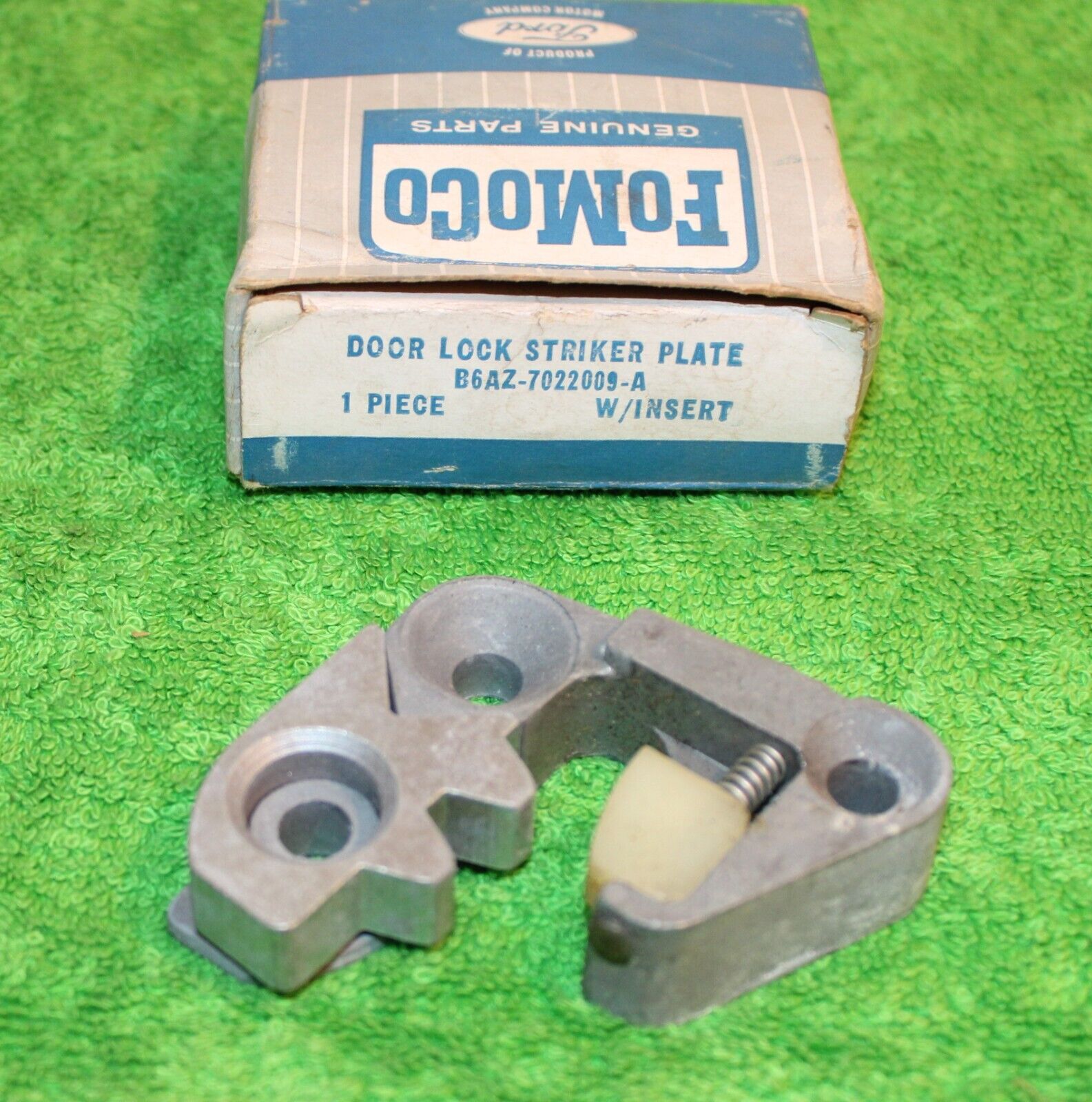 1956-1957 Ford Thunderbird, 1956 Ford Passenger Cars. NEW OLD STOCK Drivers LH Side DOOR LOCK STRIKER PLATE With INSERT. This is an ORIGINAL FORD NOS PART. This is in Show Quality NOS condition. Ready To Install. Impossible To find NOS. Please email with any questions. 031424-2 WE HAVE AN EBAY STORE WITH THOUSANDS OF ORIGINAL and NOS FORD PARTS. CHECK IT OUT.