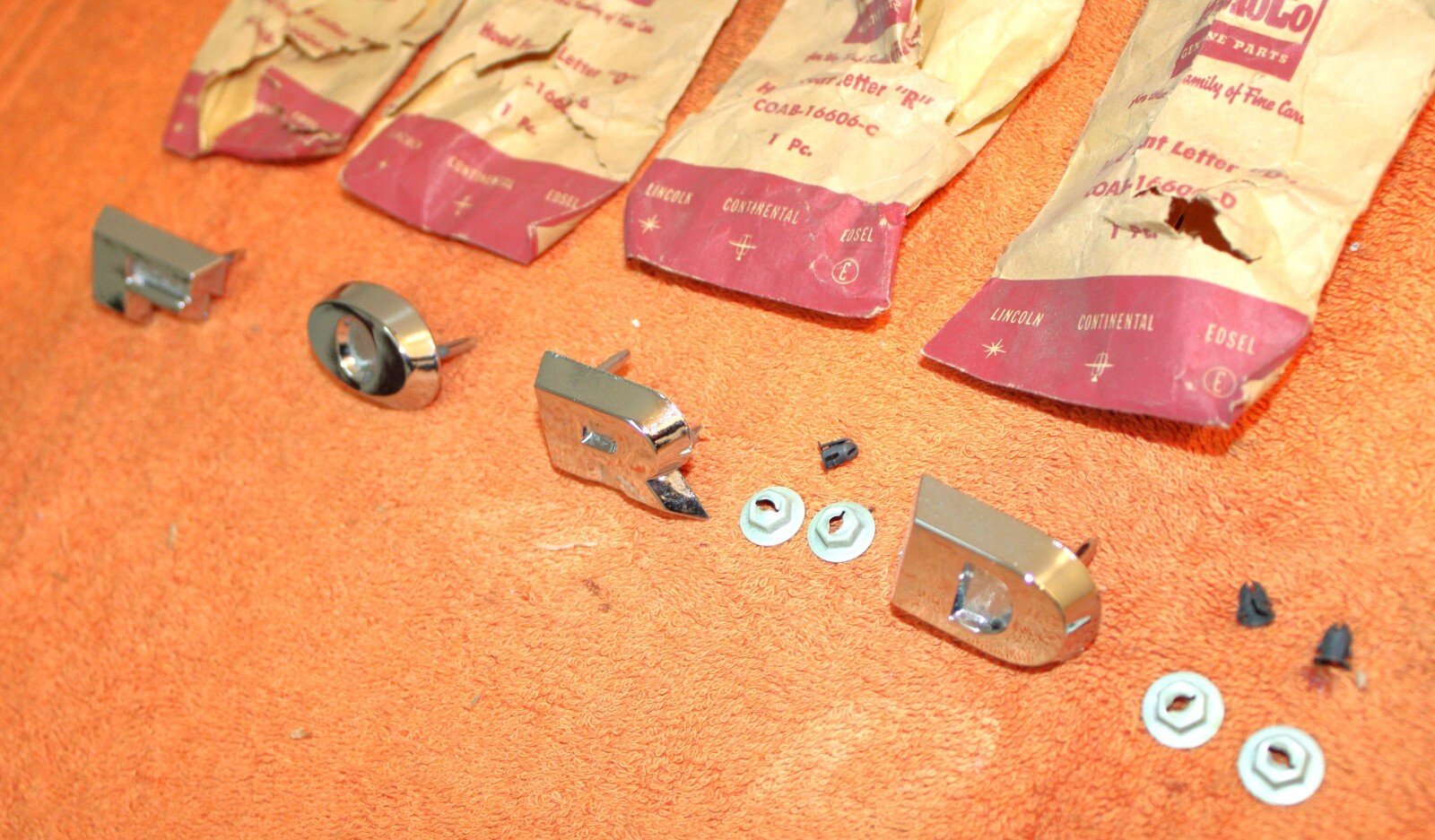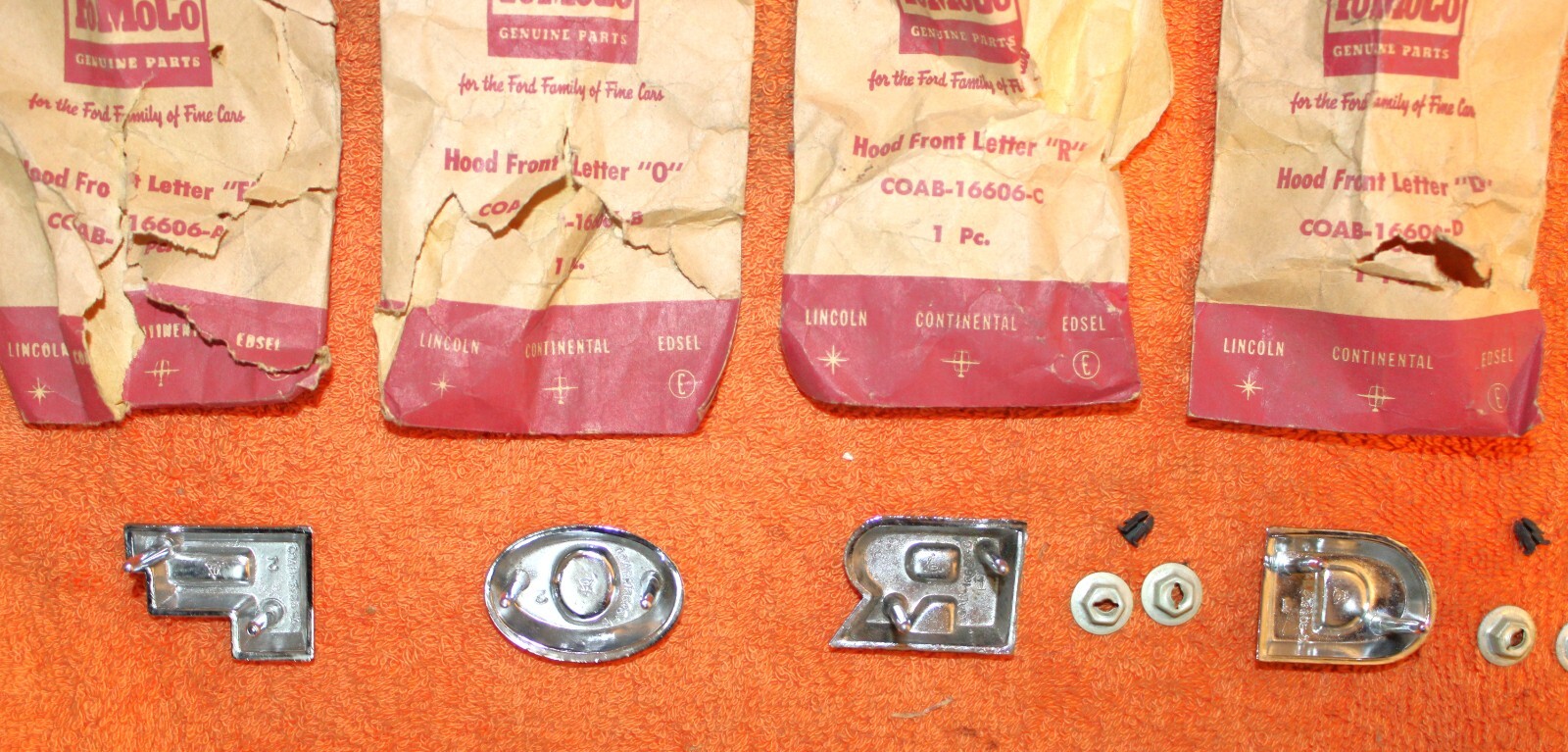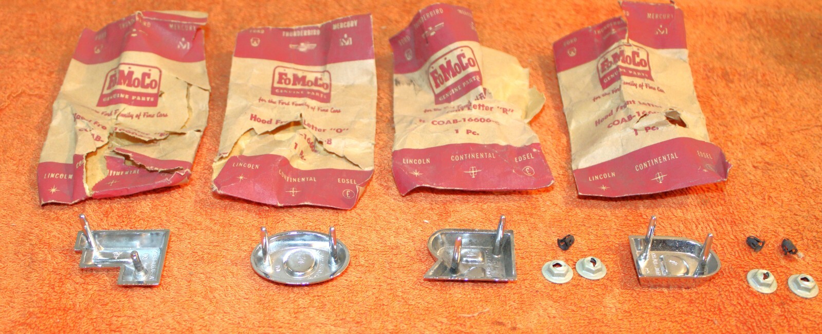 NEW OLD STOCK HOOD or TAILGATE ‘F-O-R-D’ EMBLEM LETTERS. These are ORIGINAL FORD NOS PARTS. Brand New in the packages. The chrome is excellent and these all look really nice. Excellent Condition. IMPOSSIBLE TO FIND NOS. Please email with questions. 030124-5 WE HAVE AN EBAY STORE WITH THOUSANDS OF ORIGINAL and NOS FORD PARTS. CHECK IT OUT.