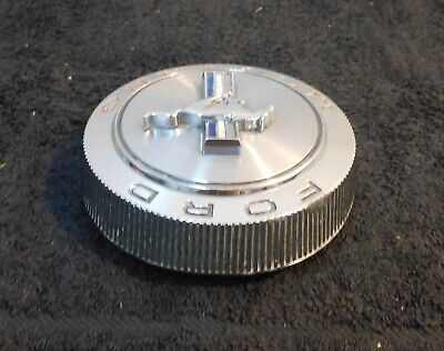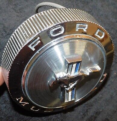 1966 Ford Mustang, Fastback, Coupe, Convertible. Original GAS-FUEL FILLER CAP. ‘Vented’ This is an ORIGINAL FORD PART. Removed from a 1966 Mustang. Has the Retaining Wire Bail. This Gas Cap is in Great Original Condition. Has a Very Bright Chrome finish. There are some light scratches and a couple light dings on the outer edge. No Pitting. The Center Emblem Looks Great. The color is faded but has bright chrome. No Cracks or Chips. The Backside looks Great. No Real Rust. The Mount Cylinder and Tabs are Great. Overall, this is a Great Original 1966 Mustang Gas Cap. Great to use on a driver car with a hint of patina. Please email with questions. 082322-17 WE HAVE AN EBAY STORE WITH THOUSANDS OF ORIGINAL and NOS FORD PARTS. CHECK IT OUT.