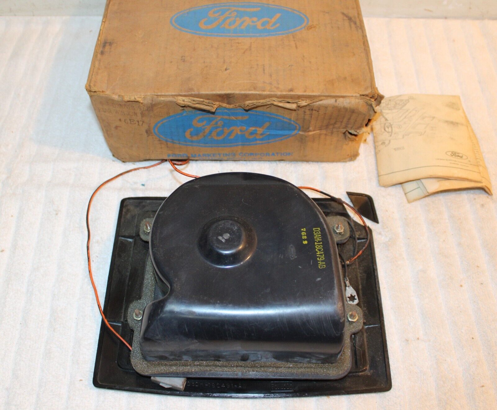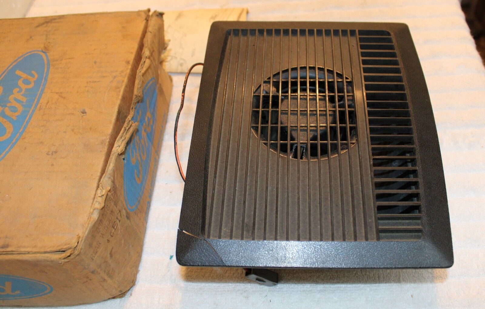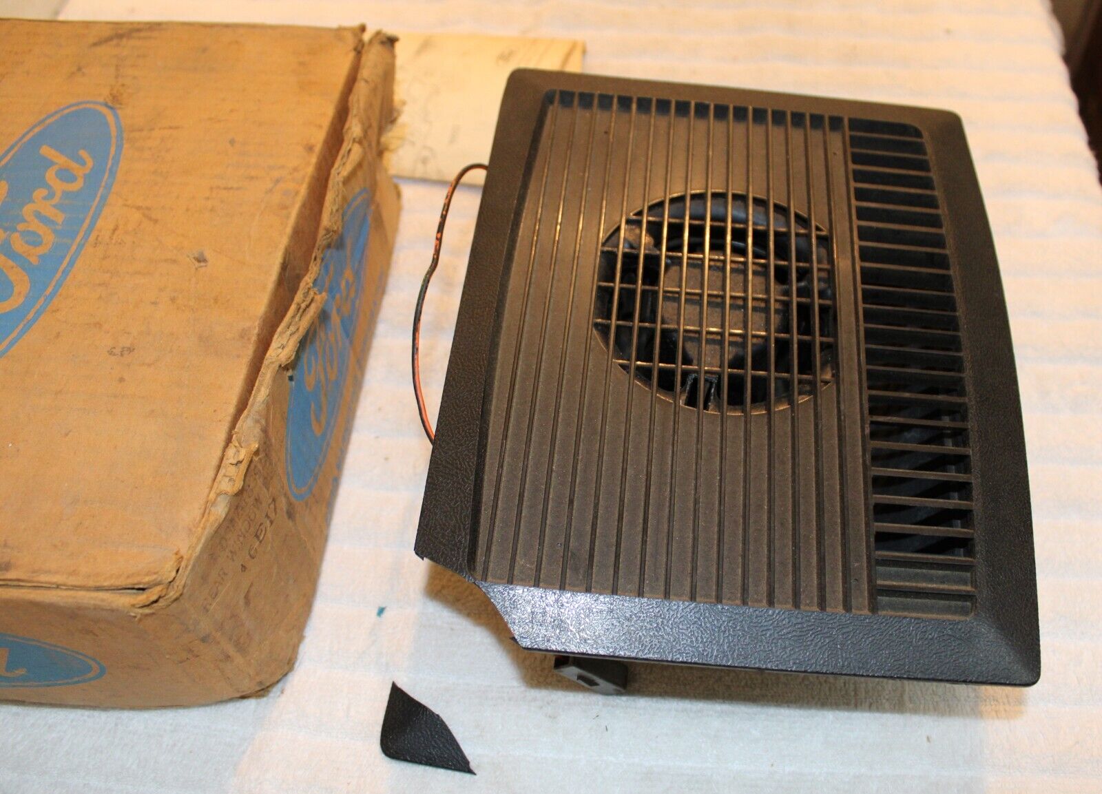 1968-1973 Ford, Mustang, Falcon, Fairlane, Torino, Galaxie, LTD, Mercury, Cougar, Comet, Montego. NEW OLD STOCK ACCESSORY REAR WINDOW DEFOGGER – DEFROSTER FAN BLOWER MOTOR With HOUSING. These are ORIGINAL FORD NOS PARTS. Brand New in the box. The trim grille has a broken corner but the piece is included so it can be glued back on and should basically be an invisible repair. This otherwise is in Excellent Condition. The blower works great. Impossible To find NOS. Please email with questions. 041124-2 WE HAVE AN EBAY STORE WITH THOUSANDS OF ORIGINAL and NOS FORD PARTS. CHECK IT OUT.