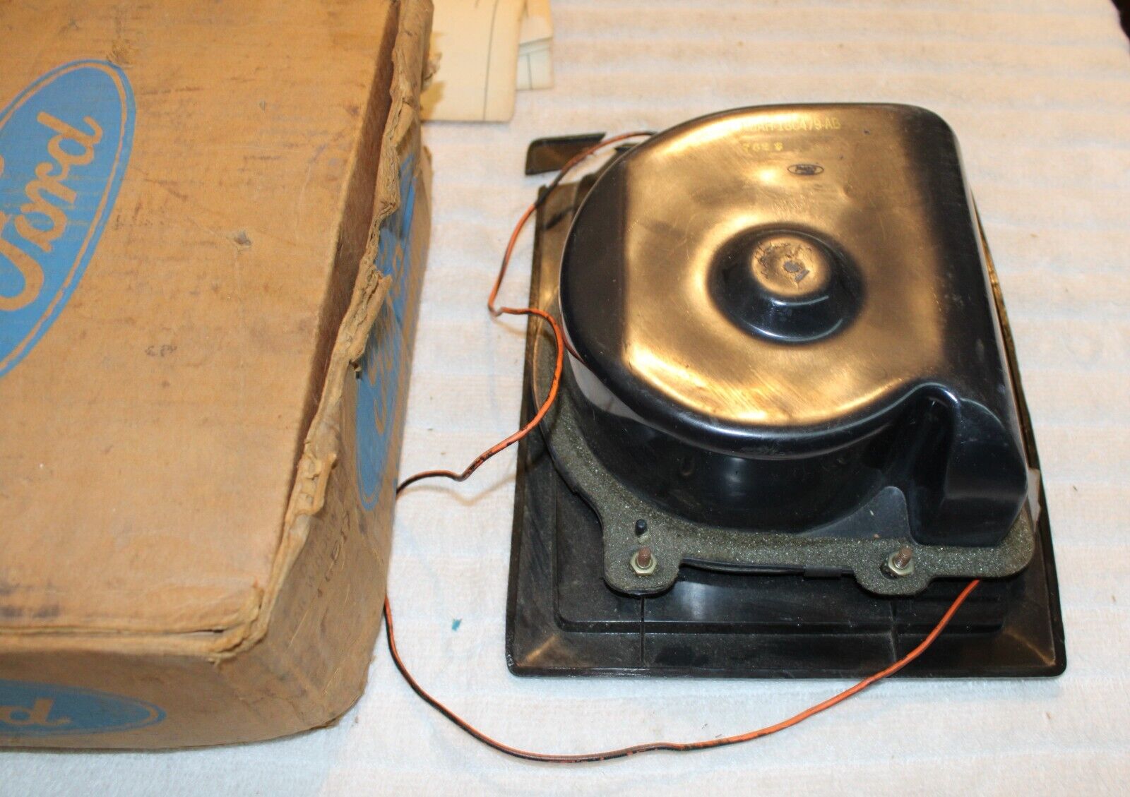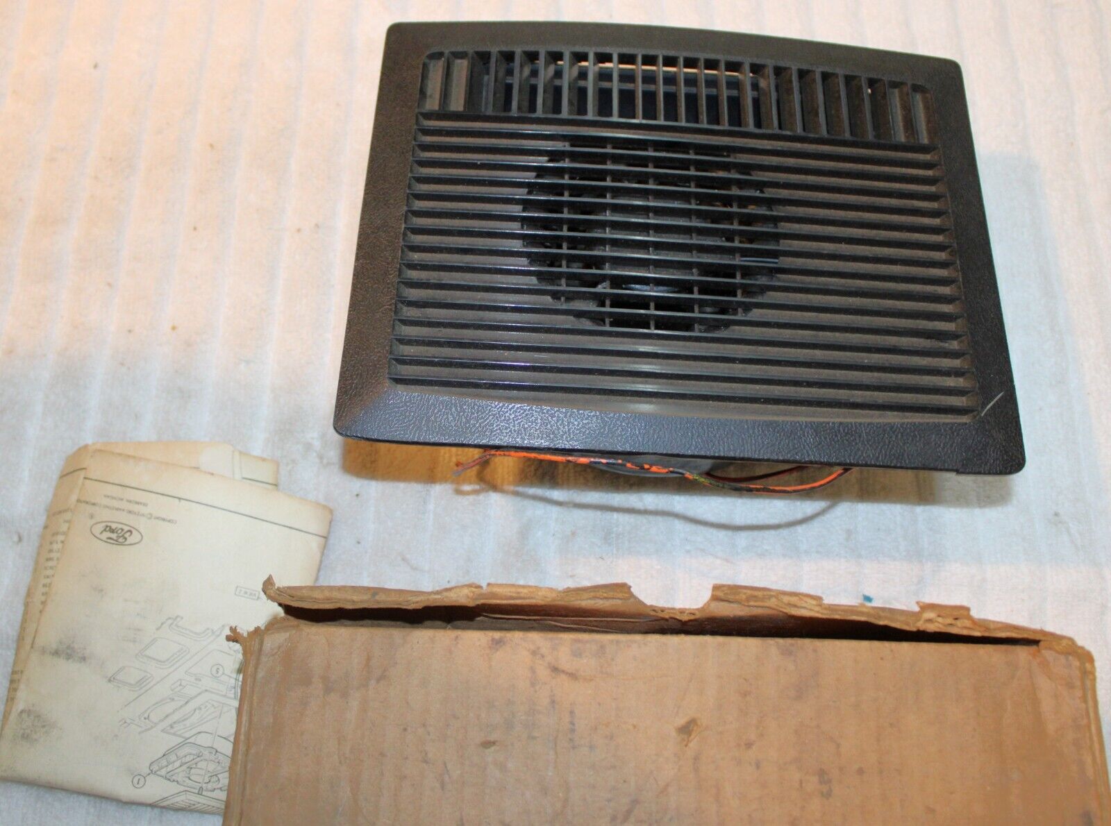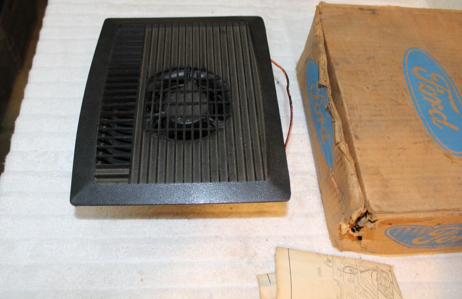 1968-1973 Ford, Mustang, Falcon, Fairlane, Torino, Galaxie, LTD, Mercury, Cougar, Comet, Montego. NEW OLD STOCK ACCESSORY REAR WINDOW DEFOGGER – DEFROSTER FAN BLOWER MOTOR With HOUSING. These are ORIGINAL FORD NOS PARTS. Brand New in the box. The trim grille has a broken corner but the piece is included so it can be glued back on and should basically be an invisible repair. This otherwise is in Excellent Condition. The blower works great. Impossible To find NOS. Please email with questions. 041124-2 WE HAVE AN EBAY STORE WITH THOUSANDS OF ORIGINAL and NOS FORD PARTS. CHECK IT OUT.