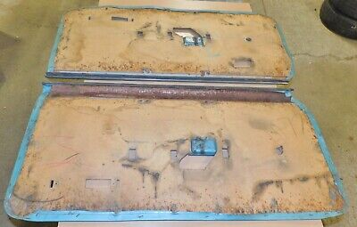 1969 Mercury Cougar XR7. ‘ORIGINAL AQUA ‘ LH+RH Xr7 INTERIOR DOOR TRIM PANELS. These are ORIGINAL FORD PARTS. Removed from a 1969 Cougar Xr7 Convertible. The Door Panels are in Good Original Condition. The original aqua color has some fading on the tops and some discoloration around the centers. Could be freshened up or redyed another color. The LH panel has a tear at the upper rear edge and there are just a couple small tears on the bottom edges. No other rips or cuts. Slightly wavy at the bottoms but the backing cards are still alright. Not broken or cracked. Good clip holes. Overall, these are Good Original XR7 Door Panels. Impossible to Find Original. Please email with questions. 051122-1 WE HAVE AN EBAY STORE WITH THOUSANDS OF ORIGINAL and NOS FORD PARTS. CHECK IT OUT.