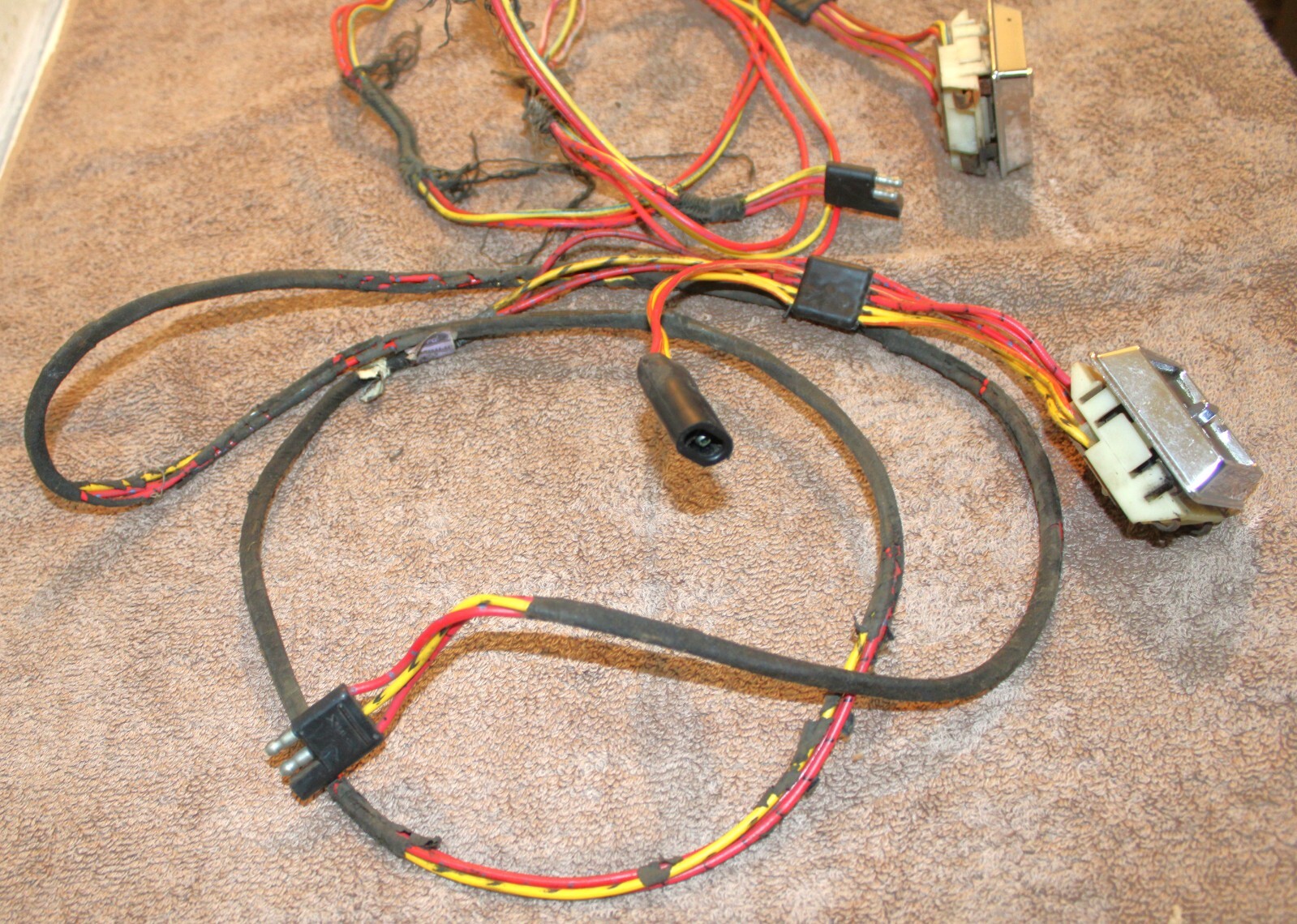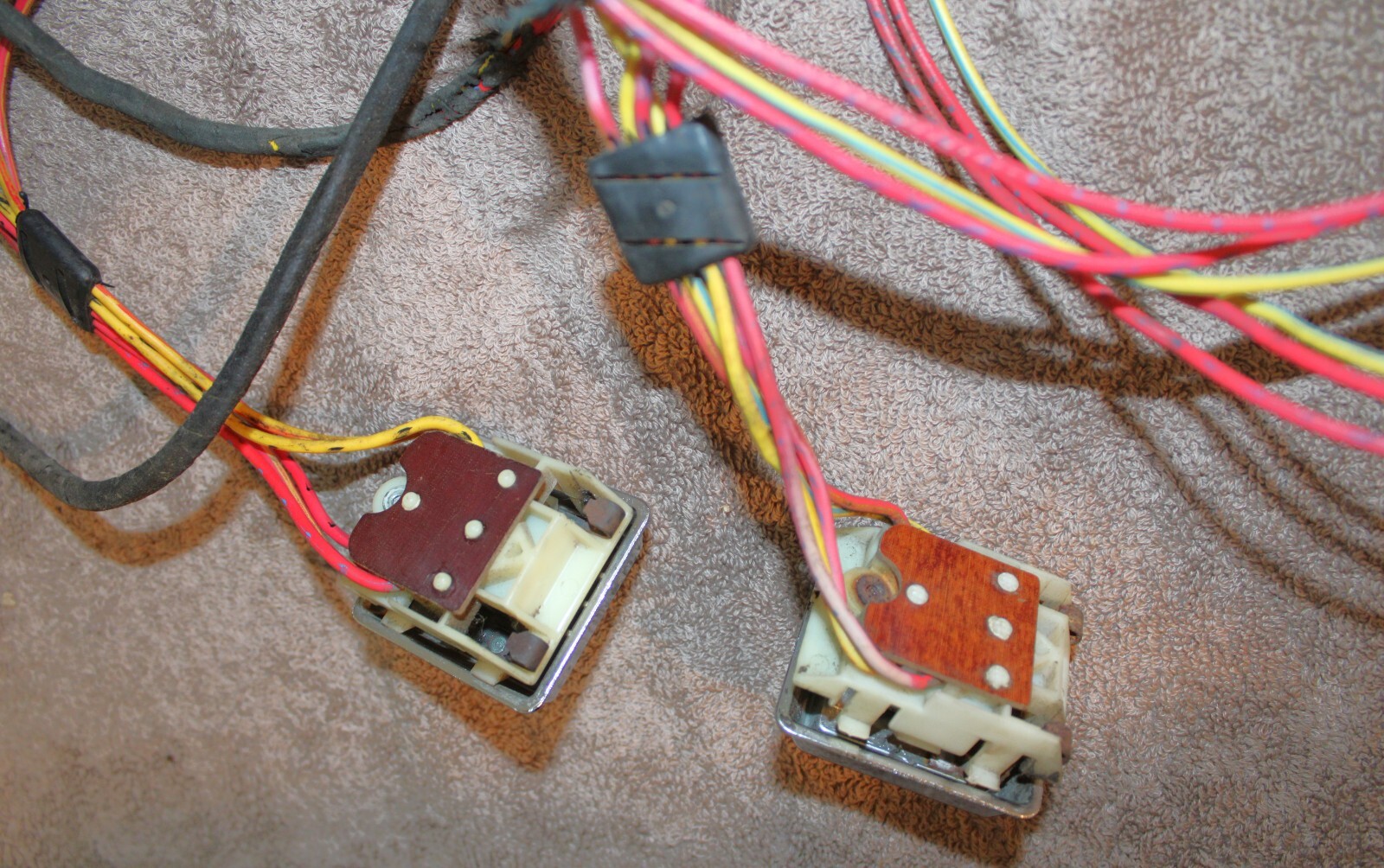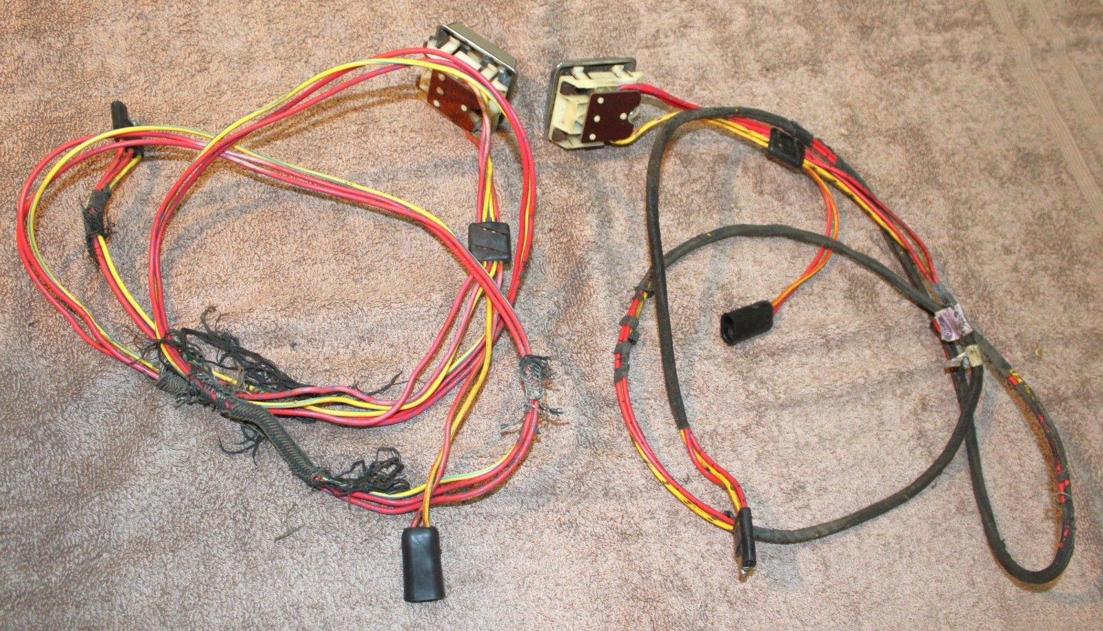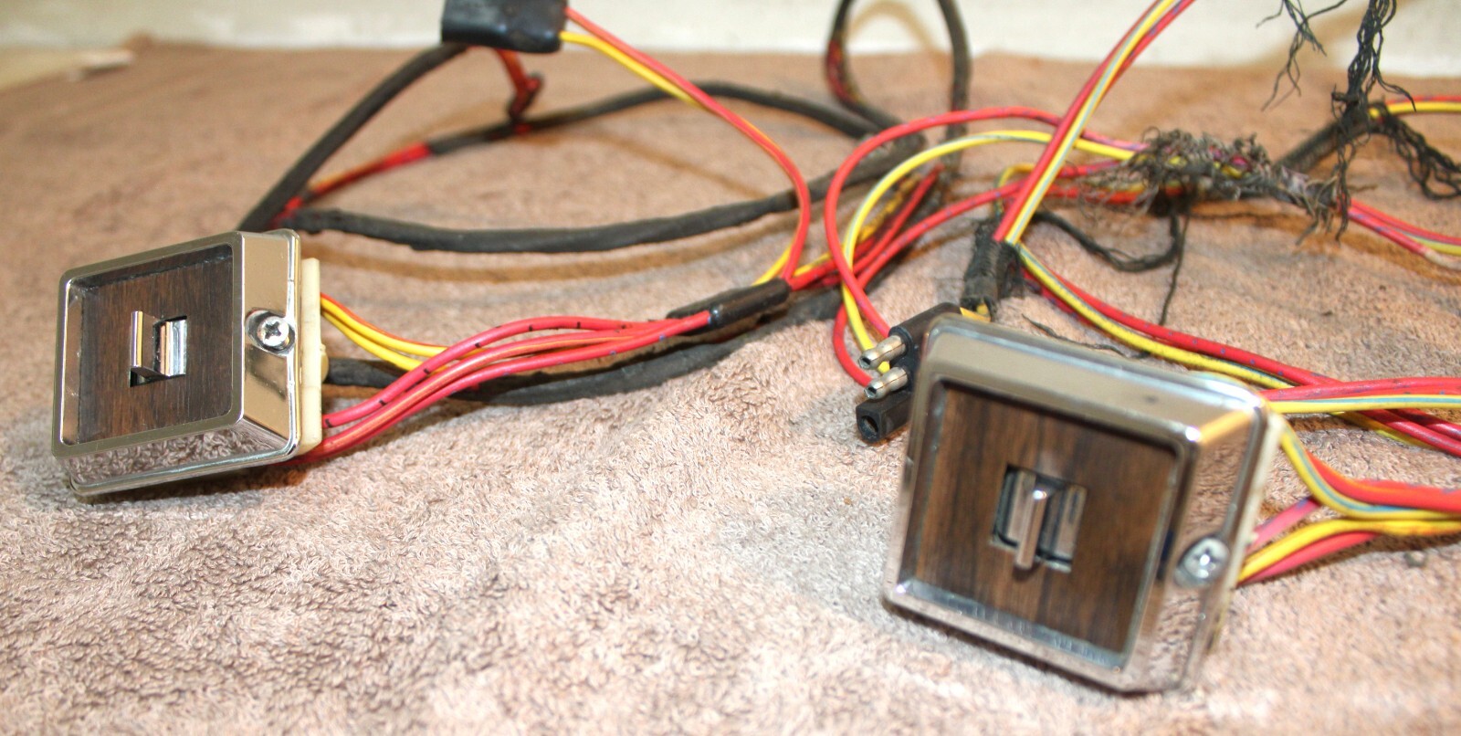 1973 Ford Mustang, Fastback, Coupe, Convertible, Grande, Mach 1, Mercury Cougar, Hardtop, Convertible, XR7. LH&RH POWER QUARTER WINDOW CONTROL SWITCHES, BEZELS And WIRING HARNESSES. These are ORIGINAL FORD PARTS. Removed from a 73 Mustang Mach 1 with Power Windows. These are in Excellent Condition. The wiring looks great. Nice color. No cuts or splices. Great plugs. The bezels look excellent with very bright chrome and great woodgrain. No pitting or rust. The switches do work. No guarantees how long they will work. No cracks or splits. Impossible To Find Original. Please email with questions. 031425-11 WE HAVE A STORE WITH THOUSANDS OF ORIGINAL and NOS FORD PARTS. CHECK IT OUT.